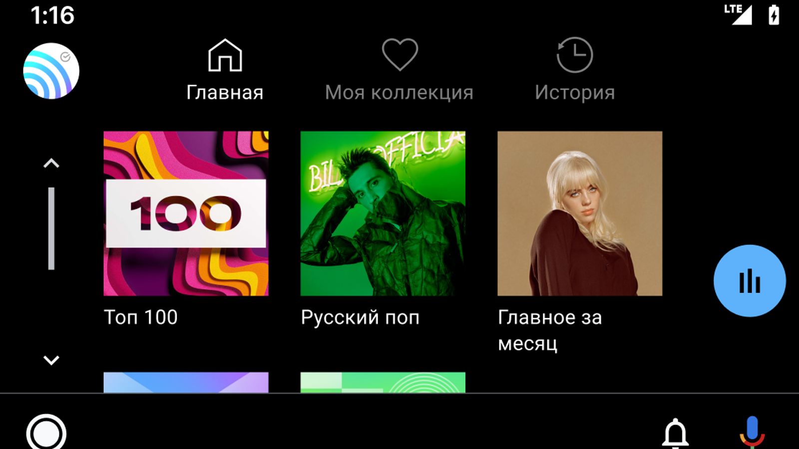 В первой «автомобильной» версии приложение предлагает базовые функции — главная страница со списком популярных плейлистов, пользовательская коллекция с любимыми треками, а также история прослушиваний. Как обещают разработчики, в скором времени добавится детский раздел и спортивные трансляции, станут доступны «Волны».