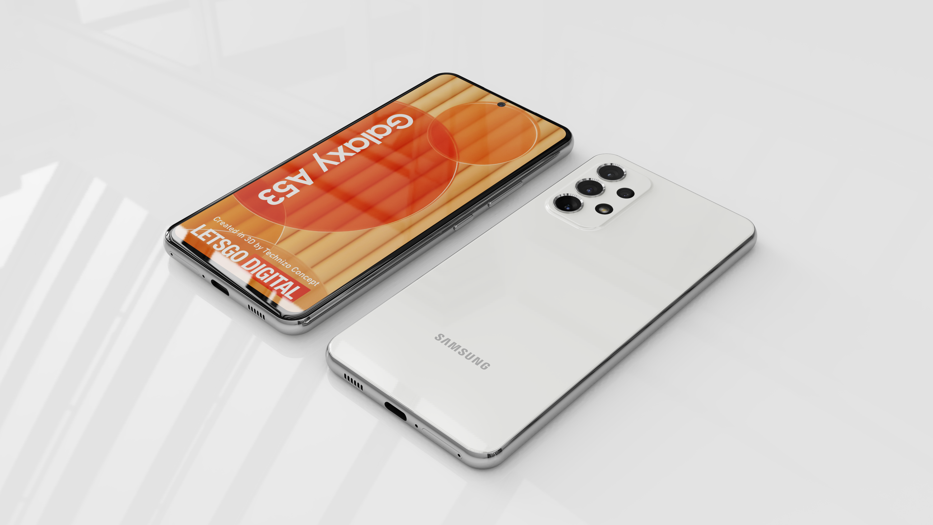 Используя всю доступную информацию, графический дизайнер Парвез Хан (Parvez Khan), также известный как Technizo Concept, создал серию рендеров смартфона Samsung Galaxy A53. На изображениях смартфон показан в белом цвете, также ожидается выпуск устройства в чёрном, голубом и оранжевом цветах.