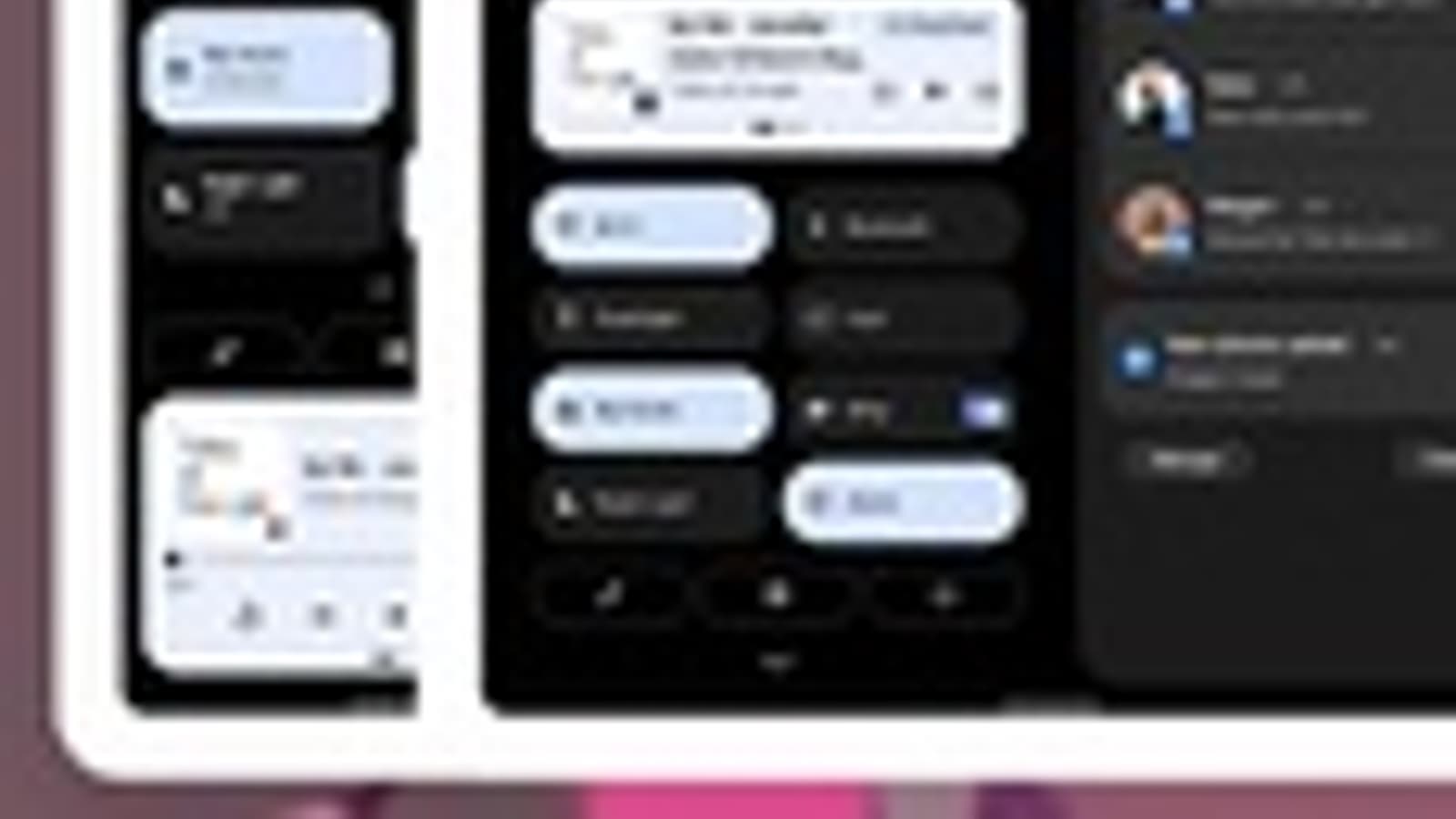 На устройствах с большими экранами предлагается раскладка в два столбца для панели уведомлений, экрана блокировки и некоторых других системных панелей.