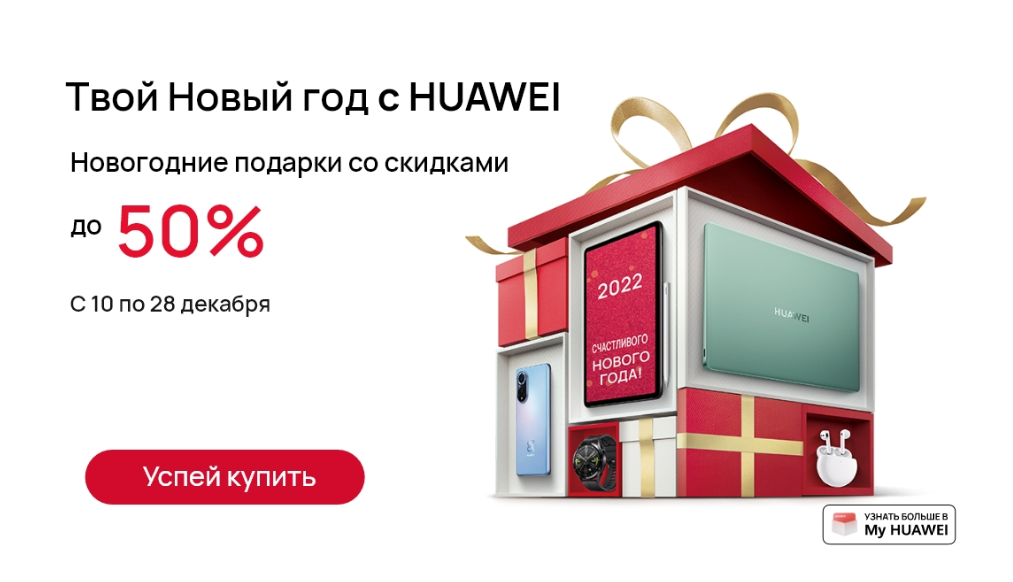 Huawei Consumer Business Group (BG), подразделение компании Huawei, объявило о начале предновогодней акции в фирменном интернет-магазине. По условиям акции, приобретая продукцию Huawei, покупатели смогут воспользоваться значительными скидками — до 50%.