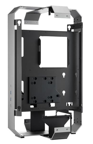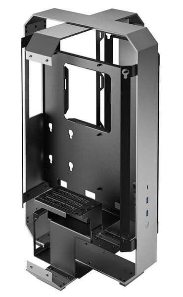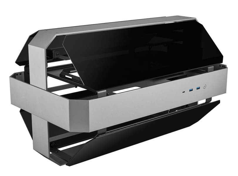 Основой конструкции выступает алюминиевая рама из полос толщиной 4 мм, изготовленных фрезерованием на станке с ЧПУ. Четыре боковые панели изготовлены из тонированного закаленного стекла. Любую панель можно снять, чтобы открыть доступ внутрь корпуса. Вертикальный кронштейн графического процессора тоже полностью съемный, чтобы обеспечить доступ к блоку питания, который находится в нижней части корпуса, вдали от системной платы и графического процессора. В комплект включен 300-миллиметровый кабель-райзер PCIe 3.0. На панели ввода-вывода есть два разъема USB-A и один USB-C.