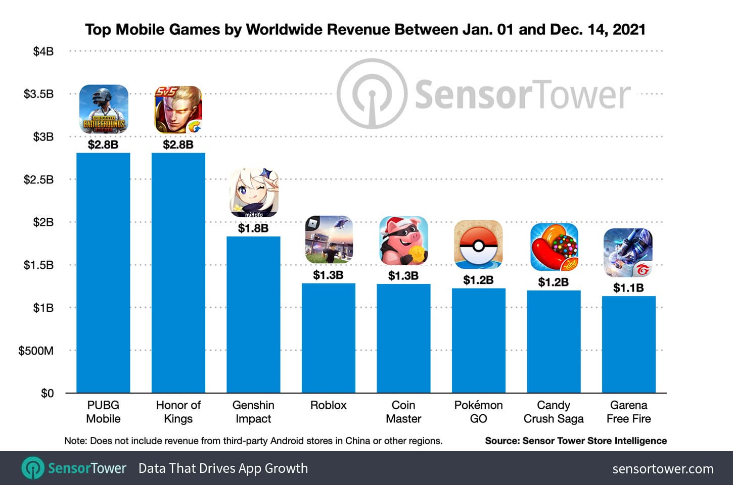 На вершине рынка, как и годом ранее, две игры: PUBG Mobile с её иначе именованными версиями для Китая и Индии, а также Honor of Kings. В этом году игры заработали по 2,8 млрд долларов.