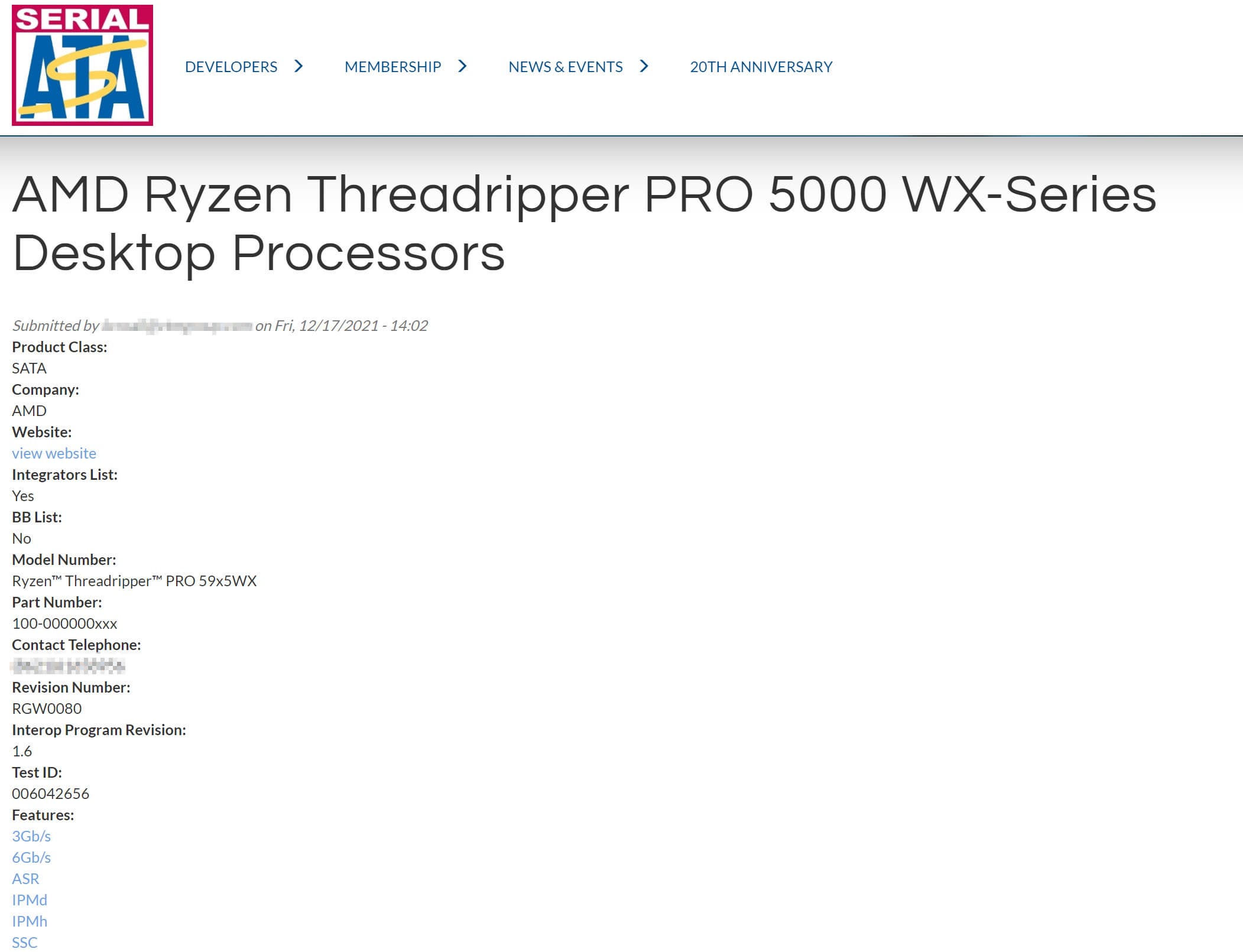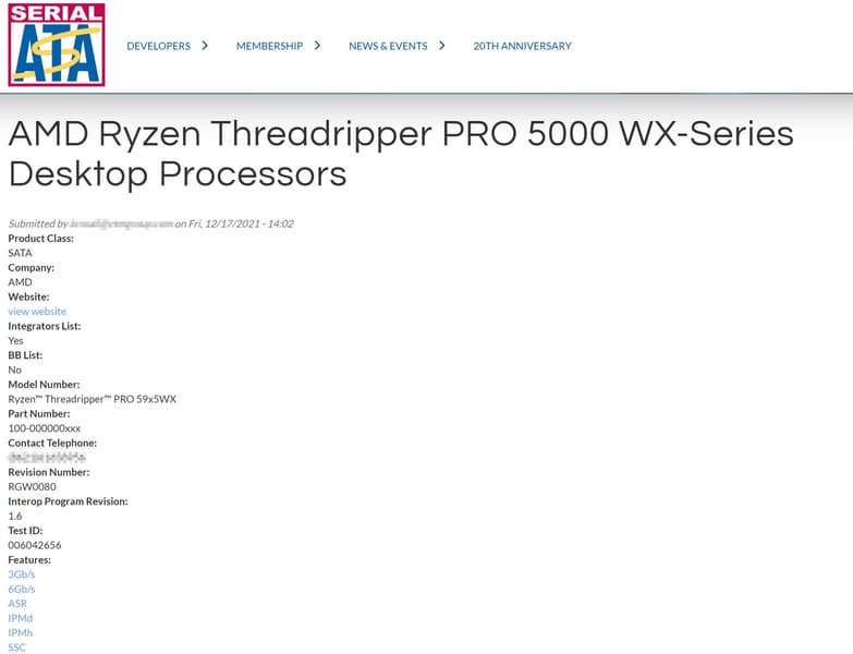 На веб-сайте SATA-IO обнаружено упоминание о грядущей серии процессоров AMD Ryzen Threadripper. Вероятно, они будут анонсированы в следующем году. Документ подтверждает, что платформа AMD HEDT следующего поколения действительно будет называться AMD Ryzen Threadripper Pro 5000 WX. Сертификация также подтверждает, что новые процессоры совместимы с интерфейсами SATA 3 Гбит/с и 6 Гбит/с.