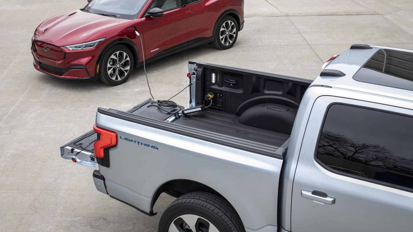 Ford сообщил, что его грузовики F-150 Lightning и F-150 PowerBoost Hybrid будут использовать бортовую розетку Ford Pro Power на 240 В, а также получат бортовой генератор и аккумуляторную систему большой емкости для работы в качестве источника аварийного питания или подзарядки других электромобилей.