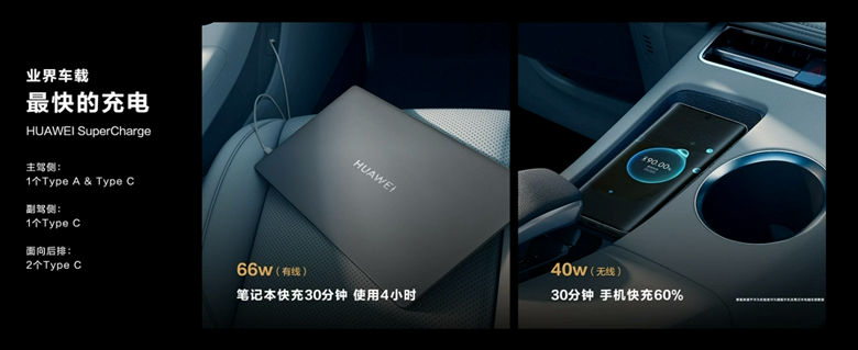 Заявлено, что Aito M5 получил возможность самой быстрой зарядки мобильных устройств среди всех электромобилей: он позволяет заряжать телефоны, ноутбуки и прочую электронику при мощности до 66 Вт проводным путём, а мощность беспроводной зарядки составляет 44 Вт. Есть атмосферная подсветка салона.