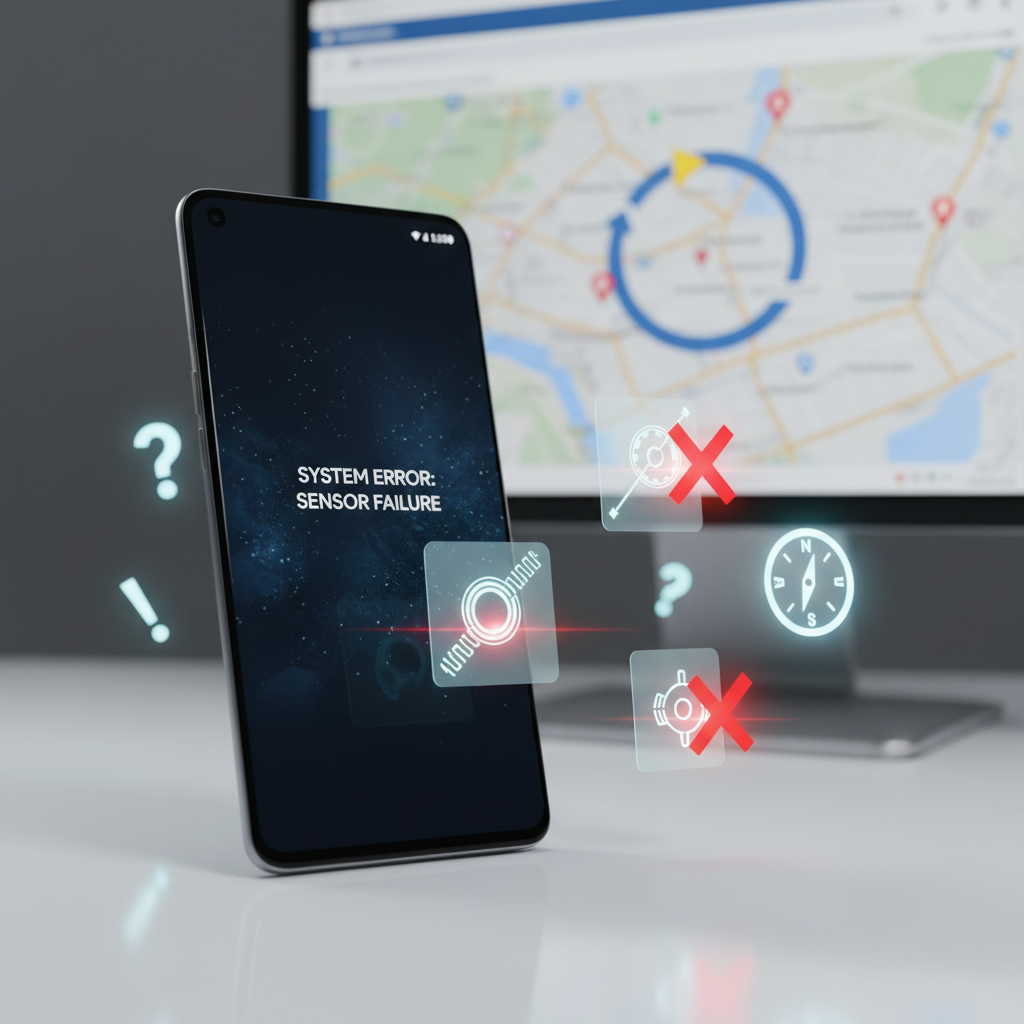 Причина этой проблемы заключается в том, что устройство не может считывать данные, предоставляемые гироскопом, акселерометром и компасом, что не позволяет устройству определить, как именно в пространстве располагается телефон.