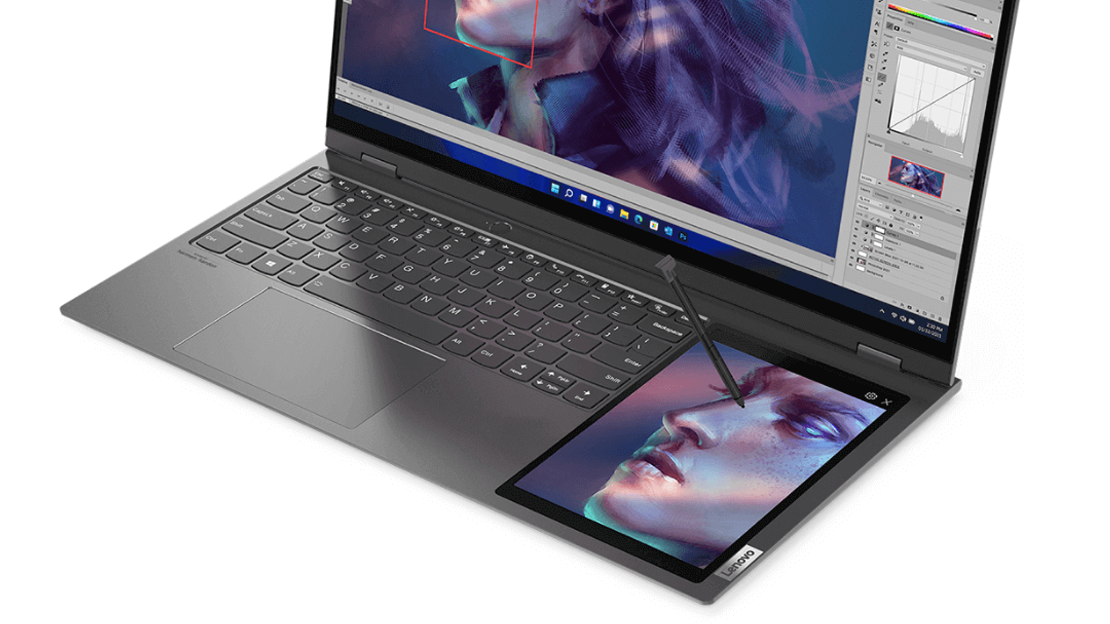 Как можно видеть, основной изюминкой новинки является крупный вертикально ориентированный экран справа от клавиатуры. Он не заменяет тачпад, а нужен, судя по поддержке стилуса, для рисования. Можно сказать, что это специфическая альтернатива графическому планшету.
