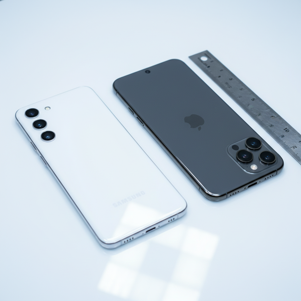 На одной из фотографий Samsung Galaxy S22 сравнили с iPhone 13 Pro. Кроме того, он замерил макет, опубликовав габариты смартфона: 7,6 x 70 x 146 мм.