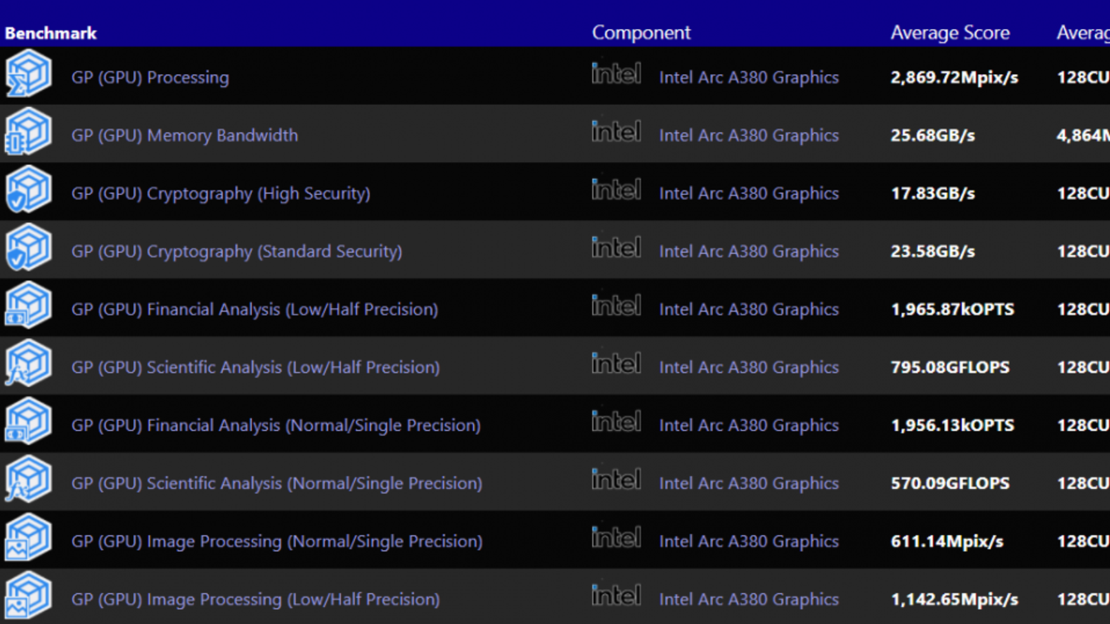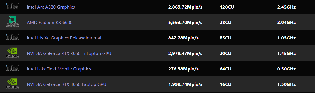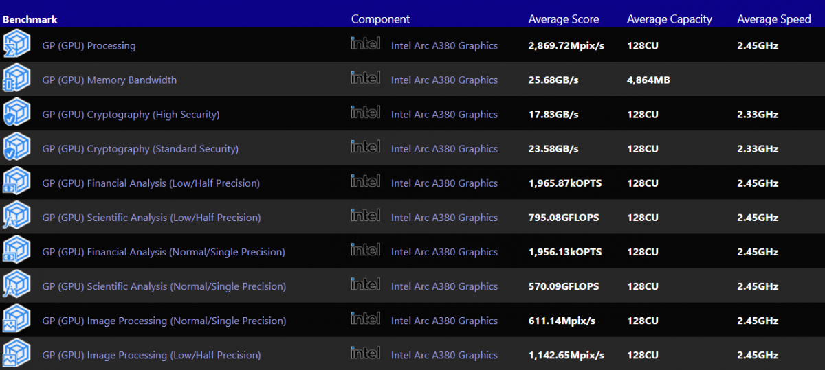 В базе SiSoftware засветилась новая дискретная видеокарта Intel на GPU DG2-128EU. В продажу она поступит под обозначением Arc A380, а производительность, исходя из данных бенчмарка, находится на уровне мобильного dGPU Nvidia GeForce RTX 3050 Ti.