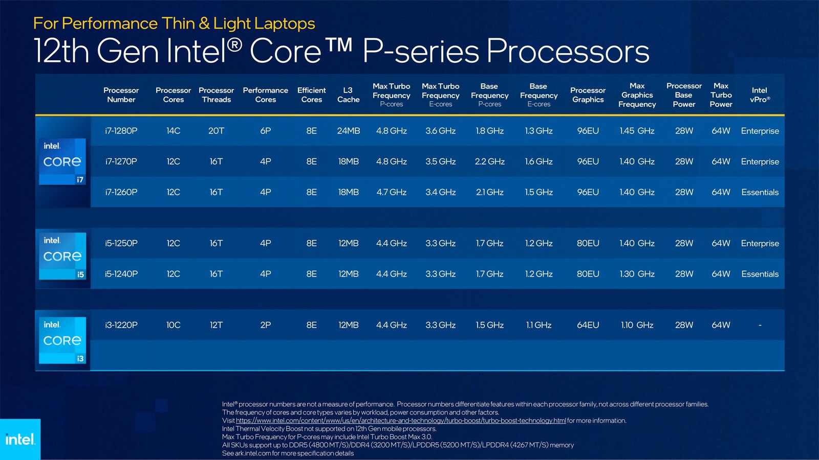 Как можно видеть, линейка очень широкая. В мобильном сегменте появились процессоры P-series, которые разместились между привычными за годы энергоэффективными U-series и высокопроизводительными H-series.