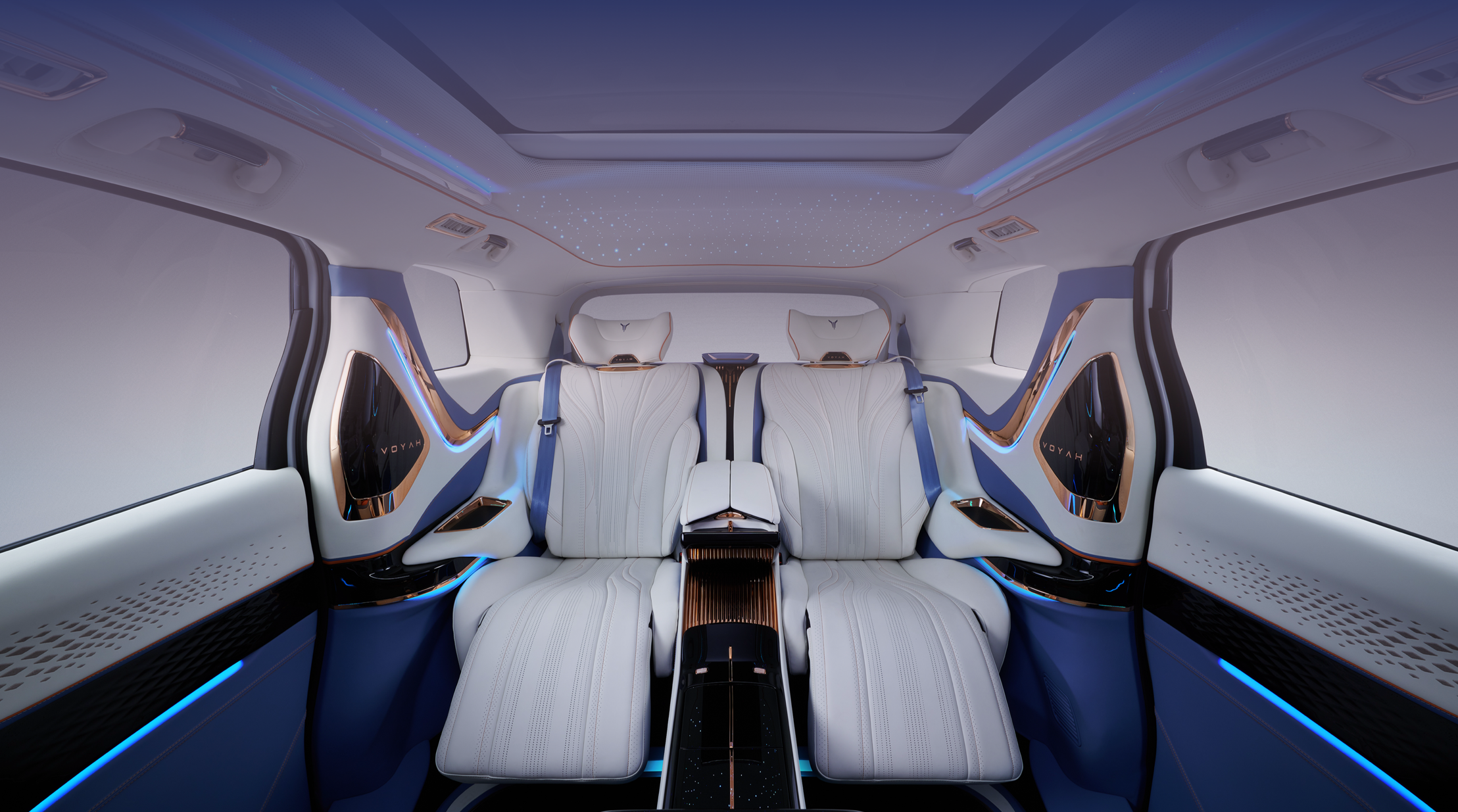 Автомобиль предлагает премиальный салон с дорогими материалами отделки, двумя независимыми креслами, большим телевизором. Производитель утверждает, что салон предлагает 5-звёздочный уровень комфорта.
