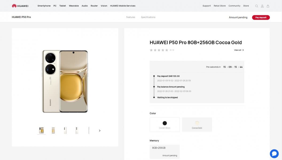Относительно Германии эта дата в отношении P50 Pocket подтверждена местным отделением Huawei в Facebook. А отделение Huawei в Саудовской Аравии не только подтвердило эту же дату, но и начало принимать предварительные заказы на P50 Pro. Для этого нужно внести депозит в размере 26 долларов.
