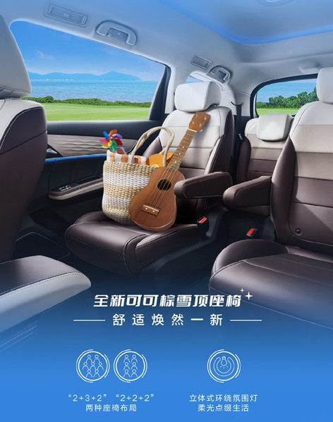 Song Max DM-i 2022 года будет доступен в 6- и 7-местной версиях. «Изюминкой» автомобиля стала модернизированная крыша, которая имеет явно выступающую конструкцию и выглядит как внешний багажный отсек. Все модели с «модернизированной крышей» 6-местные. За счёт этого высота может достигать 1880 мм, создавая больше пространства внутри.