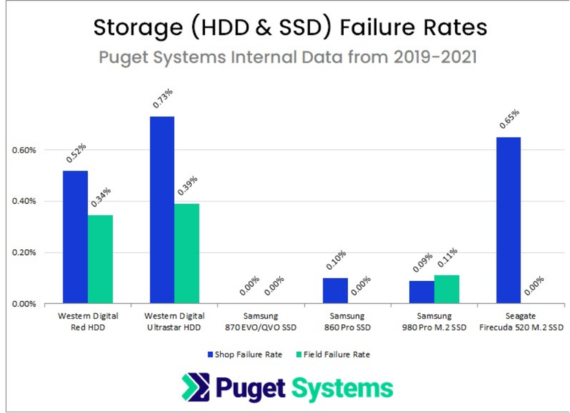 Компания Puget Systems, специализирующаяся на сборке и продаже разнообразных ПК для разных сегментов (иными словами, крупный системный интегратор), представила интересную статистику по частоте выхода из строя тех или иных комплектующих.