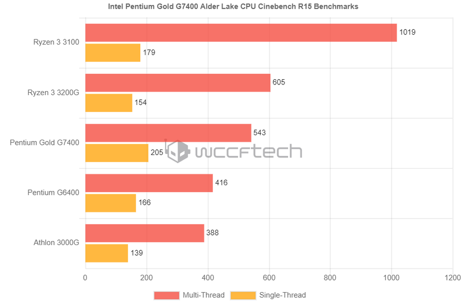 В Сети появились более полезные результаты тестирования доступного процессора Intel Pentium G7400 поколения Alder Lake.