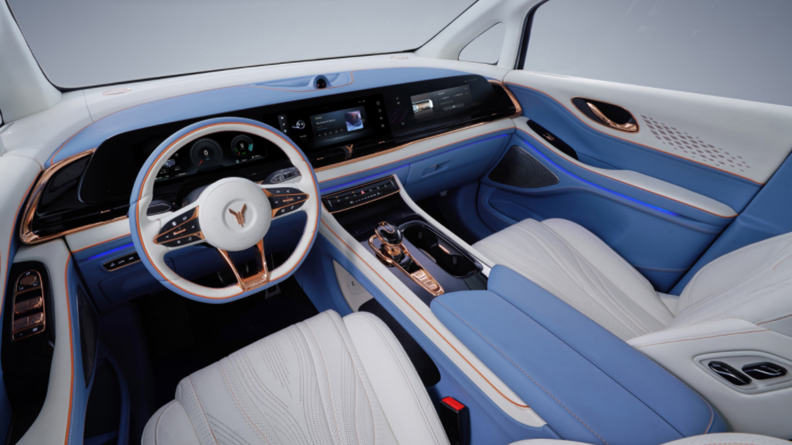 Огромное внимание уделено салону. В центральную консоль встроен большой всплывающий экран, который состоит из трёх отдельных дисплеев (цифровая приборная панель, экран для пассажира и центральный дисплей мультимедийно-развлекательной системы).