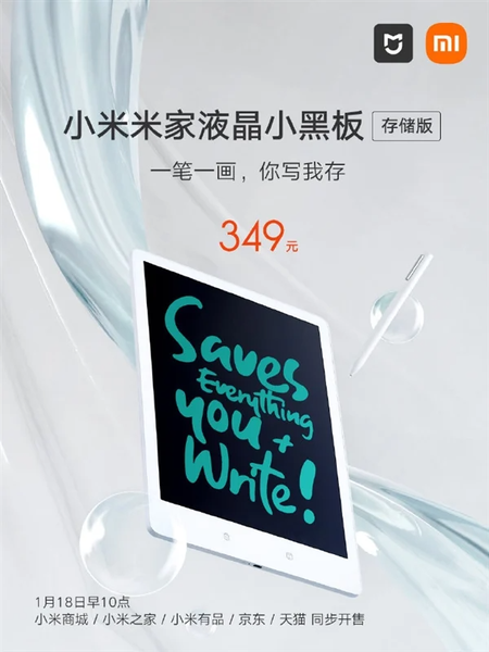 Xiaomi впервые выпустила графический планшет MIJIA LCD Small Blackboard, также известный как MIJIA LCD Writing Tablet, ещё в 2019 году. Продукт стал хитом, и компания зафиксировала огромные продажи с течением времени. Это подтолкнуло Xiaomi к выпуску обновлённой версии под названием MIJIA LCD Small Blackboard Storage Edition.