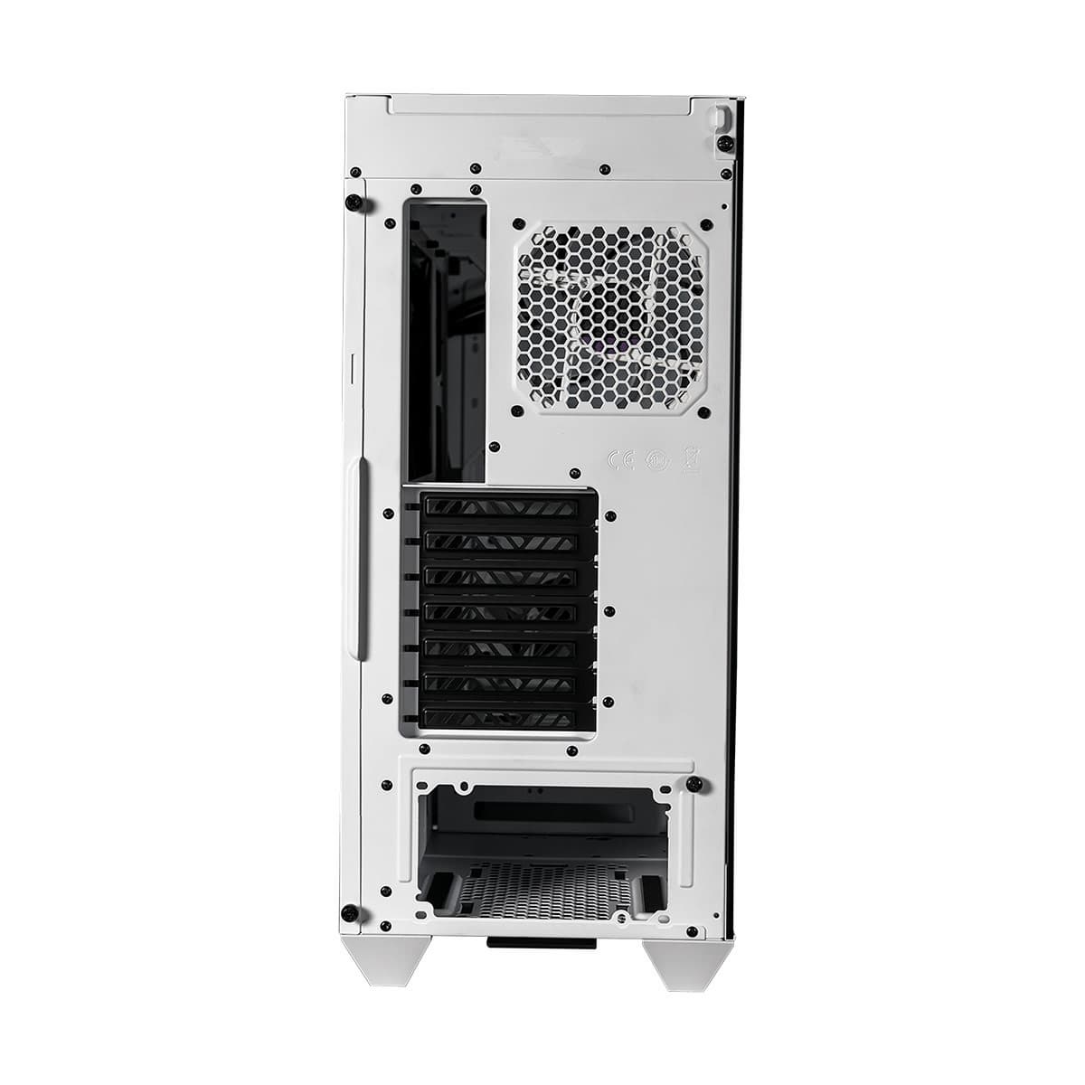 Корпус размерами 516 х 224 х 510 мм рассчитан на установку системной платы типоразмера mini-ITX, microATX, ATX или E-ATX. В нем есть семь слотов для карт расширения. Максимальная длина карт — 410 мм. Что касается других ограничений, высота процессорной системы охлаждения ее может быть более 167 мм, а в нижнем отсеке помещается блок питания ATX длиной до 180 мм.