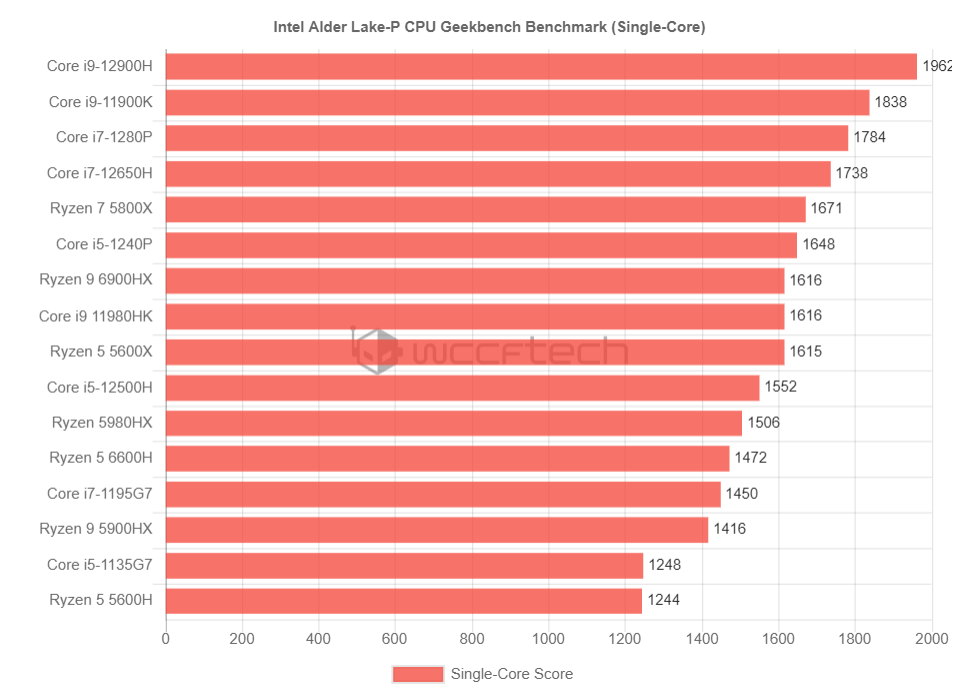 Как можно видеть, результаты новых процессоров относительно других моделей на рынке очень хороши. Смотреть нужно, безусловно, в первую очередь на результат в многопоточном режиме. Тут Core i5-1240P, который в своей линейке второй снизу, умудряется обойти даже Ryzen 9 5980HX и не особо много уступает Core i9-11980HK. Новейший Ryzen 5 6600H немного отстаёт.