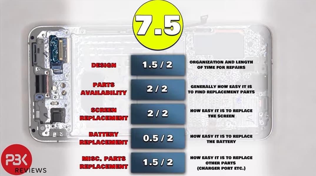 В целом, Galaxy S22 разбирается и собирается (и ремонтируется) как большинство других смартфонов, но из-за того, что не все компоненты легко заменить, аппарат получил 7,5 из 10 баллов за ремонтопригодность.