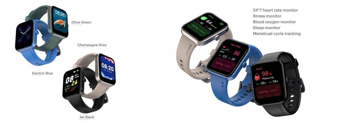 Умные часы Noise ColorFit Pulse Grand поддерживают отслеживание частоты сердечных сокращений в режиме 24/7, определение уровня кислорода в крови, отслеживание стресса, а также качества и продолжительности сна. Также есть функция контроля женского цикла.