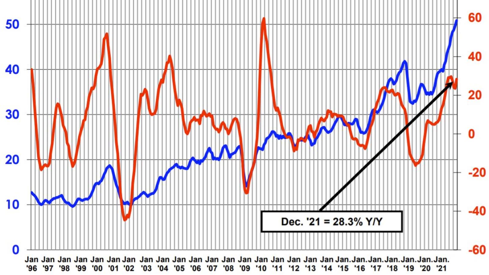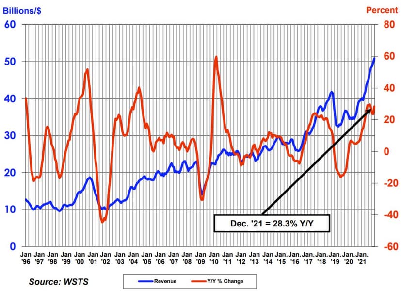 Производители нарастили выпуск, чтобы удовлетворить высокий спрос в условиях глобальной нехватки микросхем. Мировые продажи только за декабрь 2021 года составили 50,9 млрд долларов, что на 28,3% больше, чем за декабрь 2020 года, и на 1,5% больше, чем за ноябрь 2021 года.