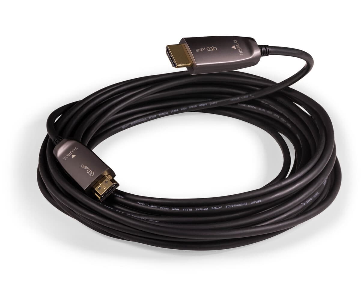 Британская компания QED, специализирующаяся на аудио- и видеотехнике, представила оптический кабель HDMI, обеспечивающий возможность передачи сжатого видео с максимальным потоком 48 Гбит/с (10K при 120 Гц) на расстояние до 20 метров. Этот кабель с сертификацией HDMI 2.1 предназначен для современных AV-инсталляций. Он поддерживает все новшества HDMI, включая несжатое видео 48 Гбит/с с разрешением 8K при кадровой частоте 60 Гц, звук Dolby Atmos и технологию HDR (High Dynamic Range).