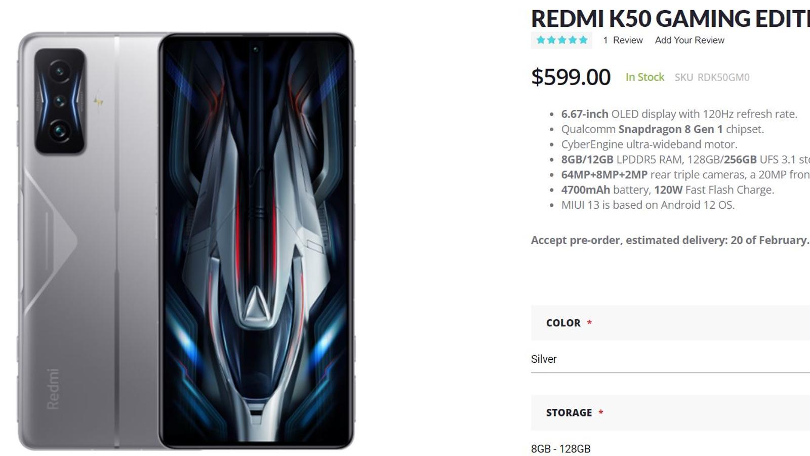 Официальная премьера нового флагмана Redmi K50 Gaming Edition состоялась только вчера, а уже сегодня новинка стала доступна для международных покупателей на площадке Giztop. За базовую версию с 8 ГБ ОЗУ и 128 ГБ флеш-памяти просят 600 долларов. Напомним, в Китае для первых покупателей Redmi K50 Gaming Edition установлена специальная цена 520 долларов, а с началом широких продаж она повысится до 550 долларов. Так что наценка Giztop не так уж и велика.