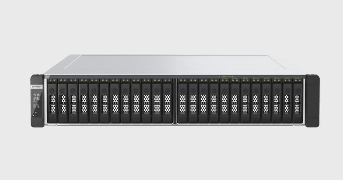 Основой NAS служат процессоры Intel Xeon Silver 4300. Объём памяти DDR4 ECC может достигать 1 ТБ. В хранилище есть двадцать четыре отсека для твердотельных накопителей U.2 PCIe Gen 4 x4 (слоты с 17 по 24 также поддерживают SATA 6 Гбит/с) и два слота для SSD типоразмера M.2 с интерфейсами PCIe Gen 3 и SATA 6 Гбит/с. По данным Qnap, работая по протоколу iSCSI, TDS-h2489FU обеспечивает производительность более 1 млн операций ввода-вывода в секунду на операциях чтения с произвольным доступом блоками 4K. Оснащение NAS включает два порта 25GbE (SFP28), четыре порта 2,5GbE (RJ45), два слота PCIe Gen 4 (в один из них уже установлен двухпортовый адаптер 25GbE), четыре порта USB 3.2 Gen 1 (5 Гбит/с) и два блока питания мощностью 1200 Вт. Хранилище работает под управлением операционной системы QuTS hero. В нём используется файловая система ZFS, которая обеспечивает работу с большими объёмами данных и простое управление ими.
