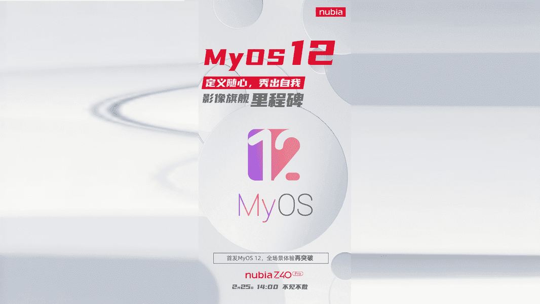 Презентация Nubia Z40 Pro запланирована на 25 февраля. Второй тизер, опубликованный компанией, называет MyOS 12 «прорывом в полноэкранном режиме».