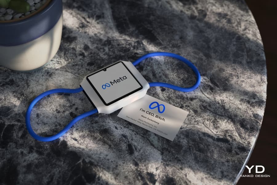 Предположительно, гаджет будет называться Meta Band. Рендеры, созданные Сарангом Шетом и размещённые на Yanko Design, демонстрируют часы с очень нетрадиционным дизайном и странной альтернативой стандартному ремешку. Предполагается, что дисплей будет довольно большим, с каплевидным вырезом наверху, в котором находится селфи-камера.
