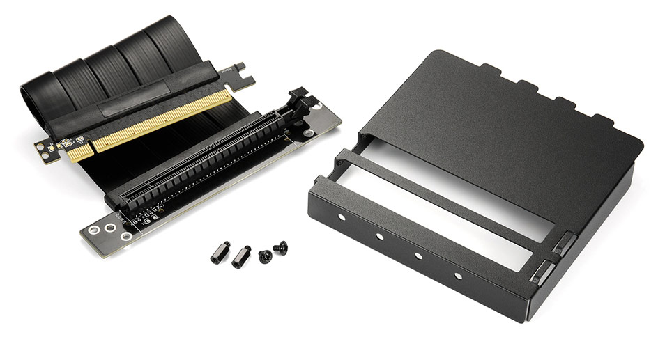 С помощью опционального комплекта Compact VGCK графические карты длиной до 27 сантиметров можно устанавливать в MS-Y1000 или MS-Z1000 вертикально. Вертикальная установка позволяет избежать изгиба карты и позволяет лучше представить освещенные элементы, такие как кулер графического процессора с RGB-подсветкой.