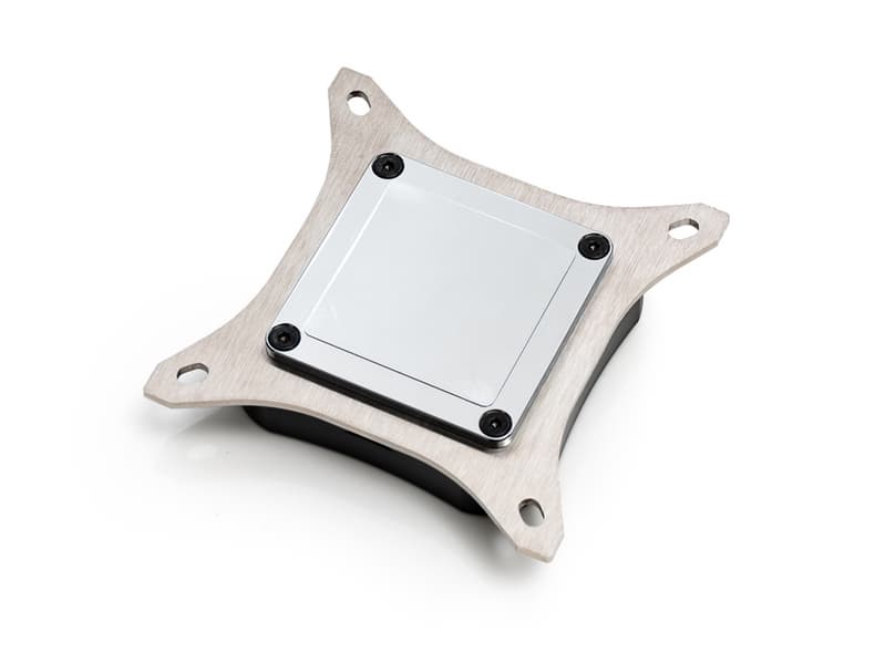 Для улучшения отвода тепла основание водоблока изготовлено из меди, а каналы для охлаждающей жидкости сформированы с таким расчетом, чтобы увеличить ее поток и площадь теплообмена. К другим компонентам СЖО водоблок подключается двумя портами G1/4". Входящее в комплект крепление обеспечивает совместимость с процессорами Intel 12-го поколения. После выхода на рынок новейшего процессора AMD будет доступно и крепление для него. Габариты водоблока равны 92 х 92 х 19,65 мм.