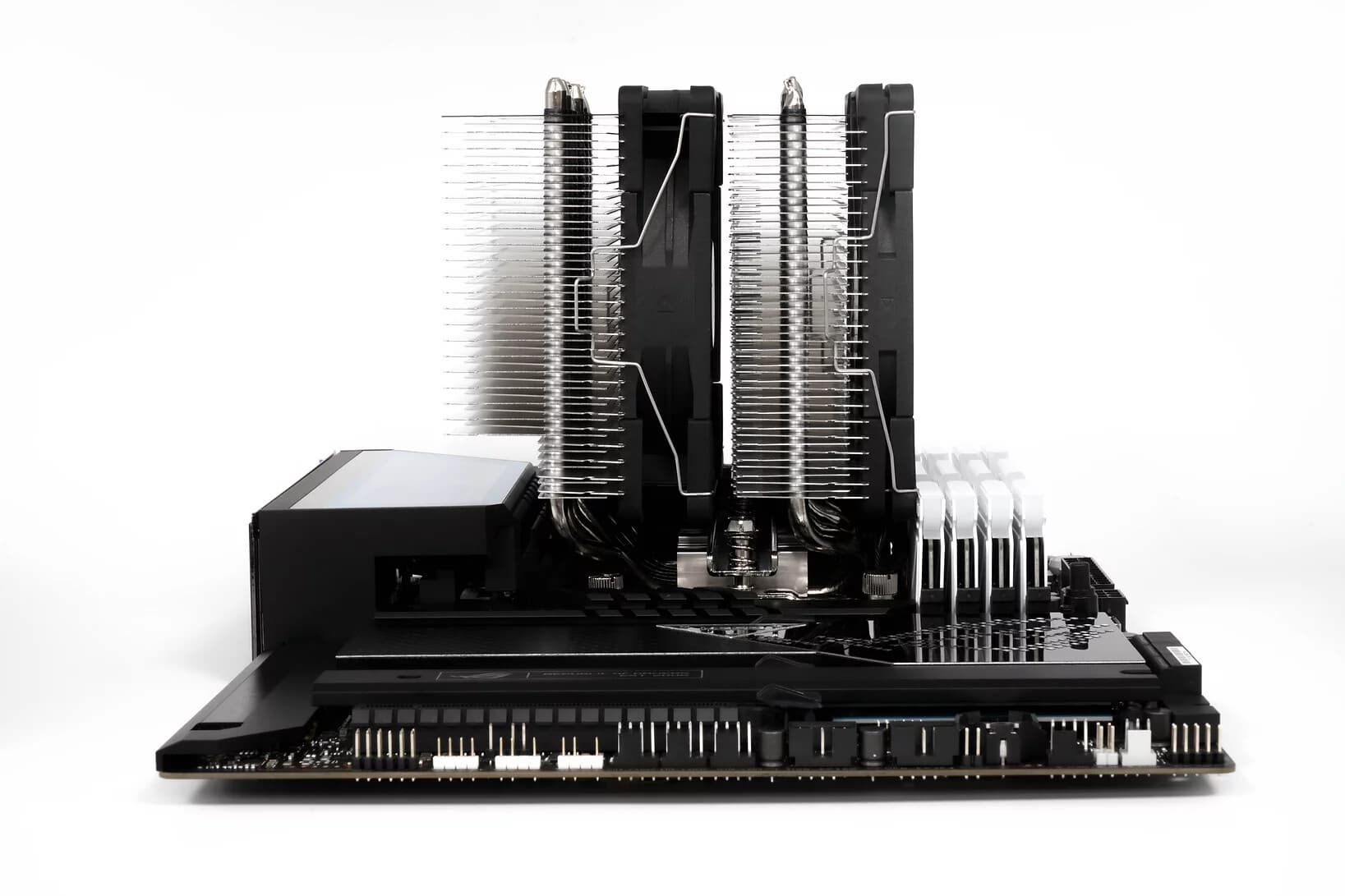 Между «башнями», связанными с основанием шестью медными тепловыми трубками диаметром 6 мм, установлен вентилятор Kaze Flex II 120 PWM. На внешней стороне закреплён вентилятор Kaze Flex II 120 Slim PWM. Скорость вращения в обоих случаях регулируется в диапазоне 300–1500 об/мин. Воздушный поток достигает 115 и 67 м3/ч, а уровень шума — 28,6 и 23,8 дБА соответственно. Кулер размерами 137 х 129 х 155 мм весит 1 кг.