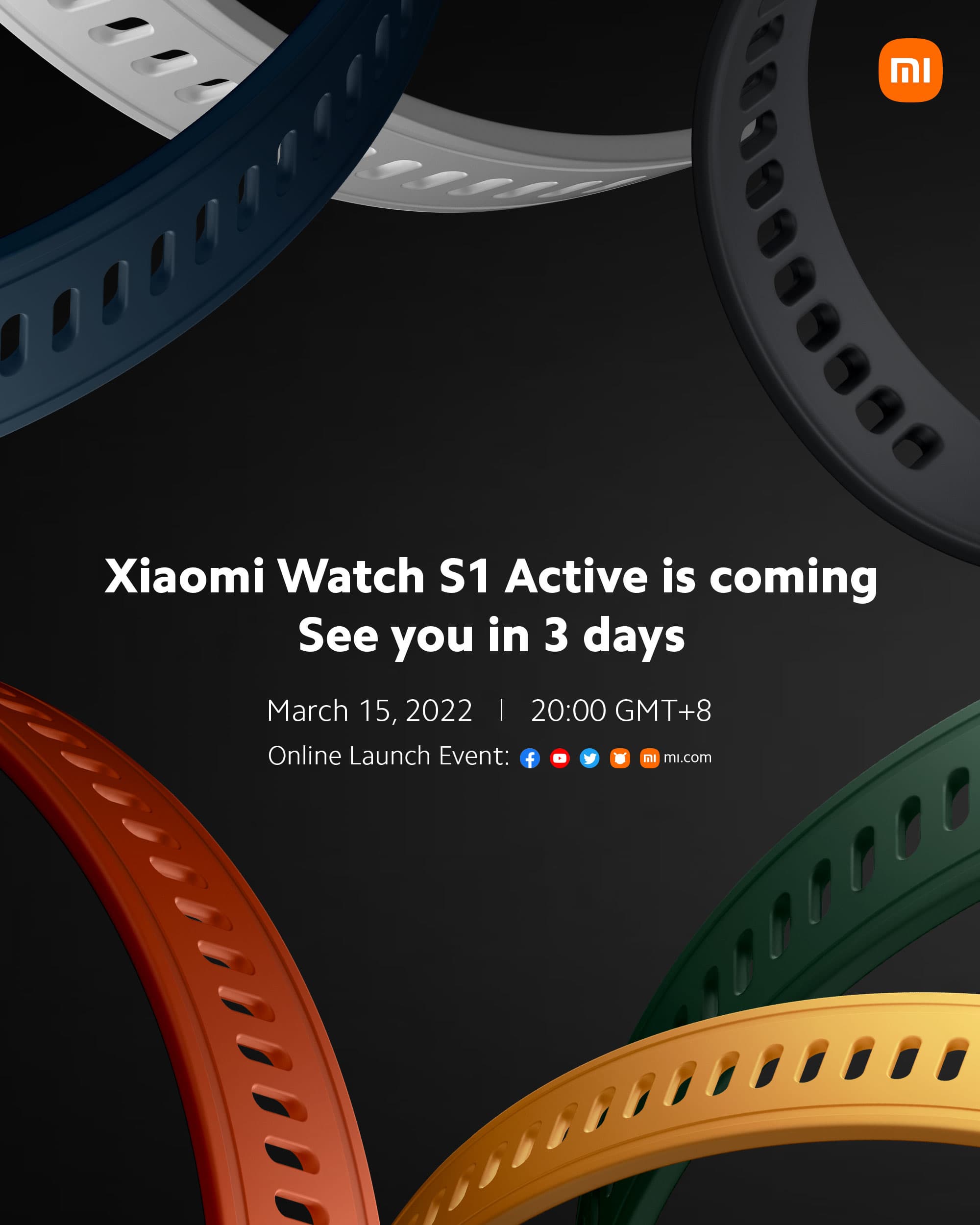 Xiaomi ничего не сообщает о новых умных часах Watch S1 Active. Первое тизер-изображение, которым поделилась компания в Twitter, показывает, что ремешки умных часов будут представлены как минимум в шести цветах, включая белый, синий, черный, жёлтый, оранжевый и зелёный.