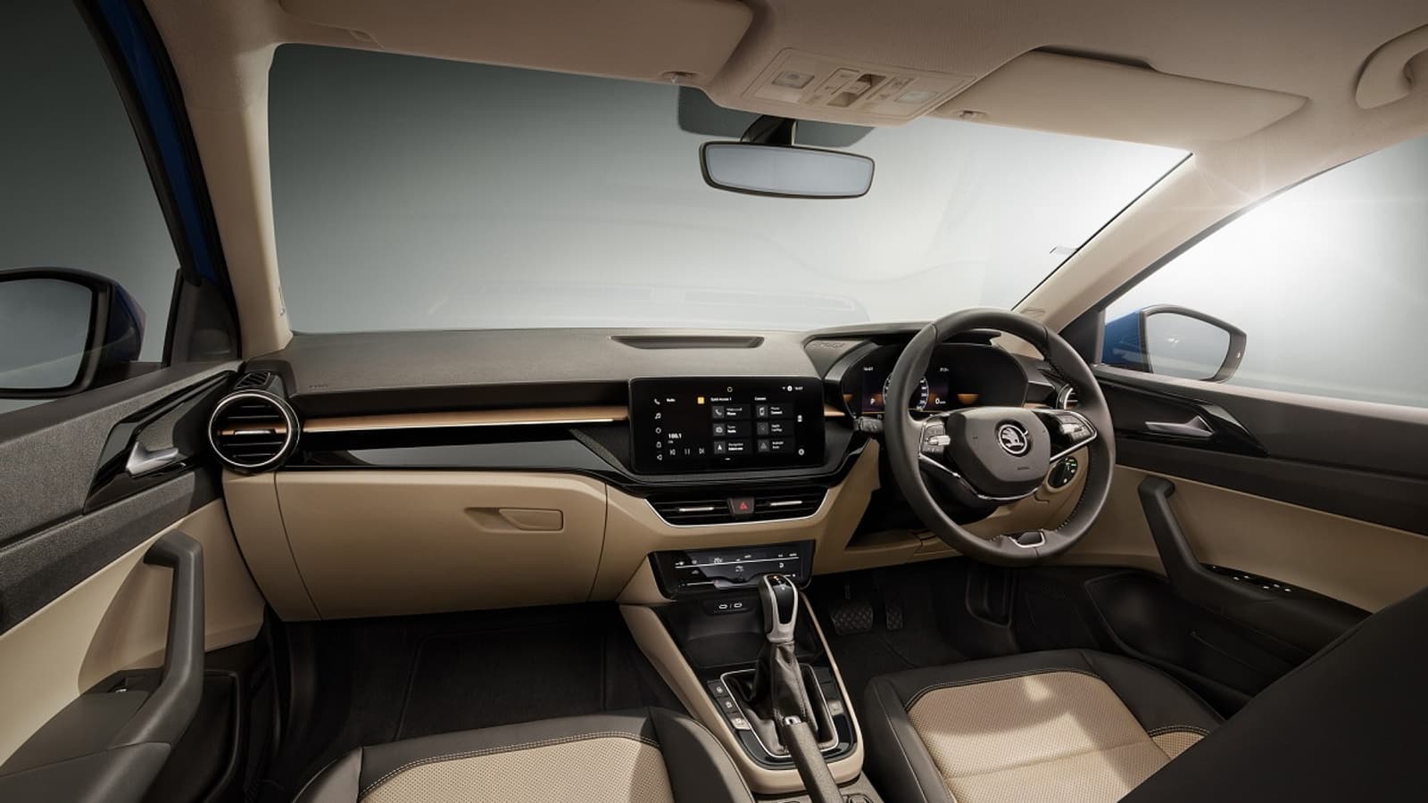 Slavia оснащён 16-дюймовыми двухцветными легкосплавными дисками. Автомобиль предлагают в пяти цветовых вариантах — Tornado Red, Crystal Blue, Candy White, Reflex Silver и Carbon Steel. В топовых версиях установлена 8-дюймовая цифровая панель приборов и 10-дюймовый сенсорный дисплей мультимедийно-развлекательной системы. Также Skoda Slavia в максимальной комплектации предлагает бесключевой доступ, климат-контроль, навигацию, вентиляцию сидений, беспроводную зарядку смартфонов и камеру заднего вида. Но даже в базовой версии есть 7-дюймовый сенсорный дисплей.