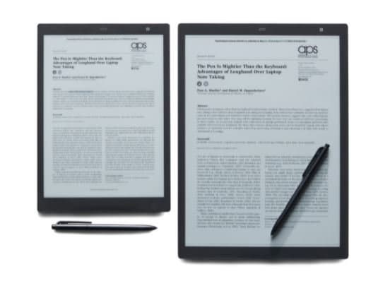 Планшет с экраном 10,3 дюйма весит всего 261 г, а его толщина равна 5,85 мм. Планшет с экраном размером 13,3 дюйма весит 368 г. Его толщина равна всего 5,7 мм. Оба планшета комплектуются безбатарейным цифровым пером, в котором используется технология Wacom EMR. По словам производителя, нескользящая поверхность экрана, изготовленная не из стекла, обеспечивает такие же ощущения от письма, как бумага. На экране не возникают блики, а изображение на нём отлично видно даже под прямыми солнечными лучами. Планшет располагает 32 ГБ встроенной памяти. Для защиты пользовательских данных используется шифрование. Что касается автономности, время работы без подзарядки при «лёгком» сценарии использования составляет три недели, при «тяжёлом» — пять дней. Оснащение планшета включает USB 2.0 Type-C, Wi-Fi IEEE 802.11a/b/g/n/ac и Bluetooth 5.0.