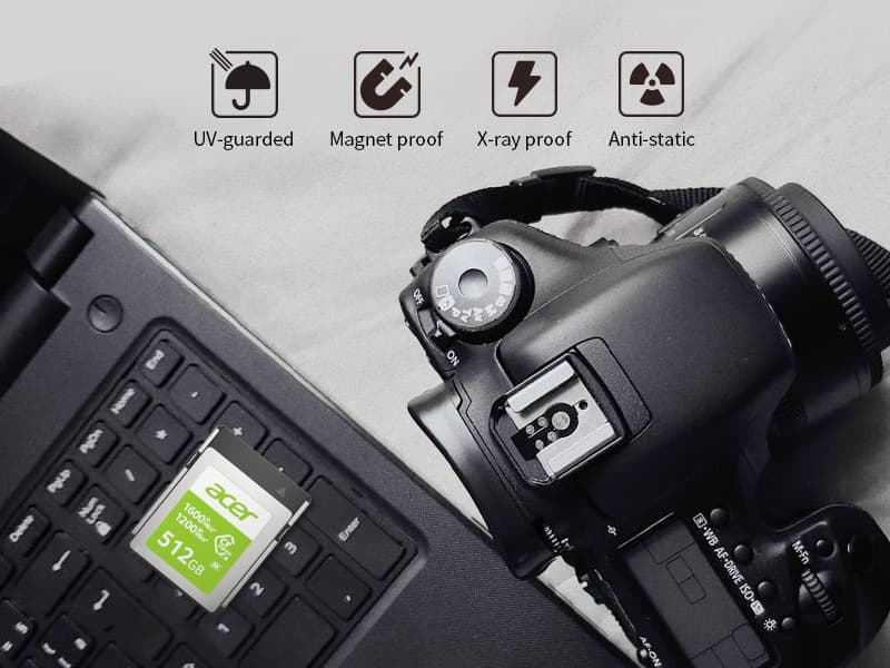 Для карт памяти Acer Storage CFexpress Type B заявлена максимальная скорость последовательного чтения 1600 МБ/с. Максимальная скорость последовательной записи карт объёмом 128 ГБ и 256 ГБ составляет 1000 МБ/с, объёмом 512 ГБ — 1200 МБ/с. Как и все карты памяти CFexpress Type B, рассматриваемые карты используют интерфейс PCIe Gen3 x2 и обратно совместимы с некоторыми камерами, оснащёнными слотами для карт XQD.
