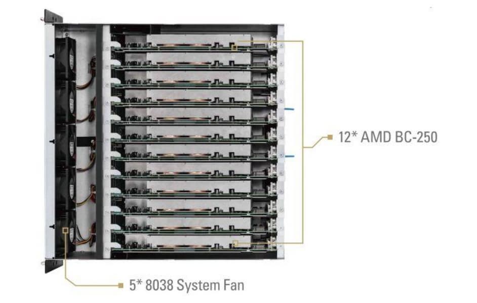 Производительность системы из 12 APU составляет 610 MH/s, то есть производительность одного APU равна почти 51 MH/s.