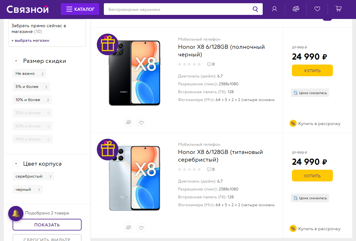 Российские пользователи уже могут купить Honor X8 у официальных ретейлеров, включая «Связной» и «М.Видео». Причём речь идёт не о предварительном заказе, а у «Связного» даже есть экспресс-доставка за 30 минут.