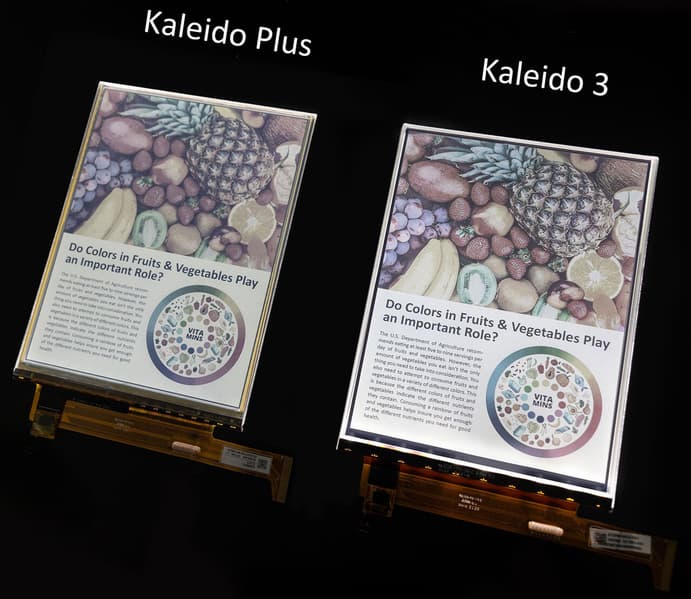 Как утверждается, экран E Ink Kaleido 3 предлагает более насыщенные цвета, 16 уровней оттенков серого и 4096 цветов, будучи «идеально подходящим» для электронных книг. Оптимизация структуры экрана позволила увеличить насыщенность цвета на 30% по сравнению с предыдущим поколением, которое называется E Ink Kaleido Plus. В E Ink Kaleido 3 используется технология E Ink Print Color ePaper, в которой массив цветных фильтров (CFA) дополняет черно-белую пленку E Ink Carta, создавая полноцветное устройство.