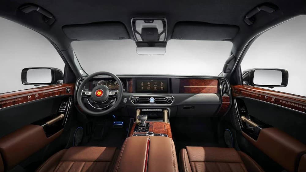 На официальных изображениях показан Hongqi LS7 с четырьмя сиденьями. Автомобиль получил обилие деревянных элементов и золотых акцентов. При этом он имеет относительно небольшие экраны цифровой приборной панели и экрана мультимедийной системы.
