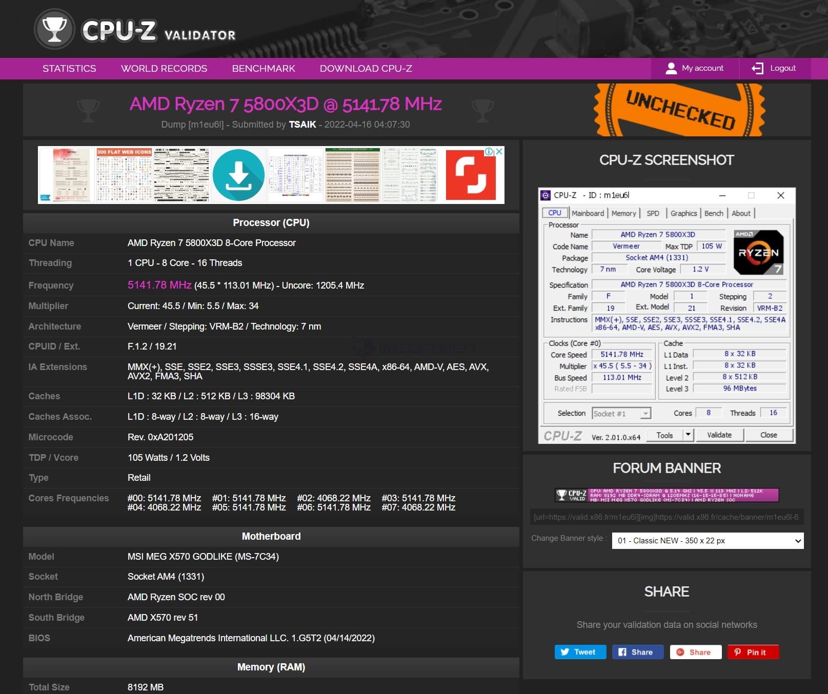 Для этого нужно, чтобы на системной плате был внешний тактовый генератор, позволяющий изменить частоту шины BCLK. Тут все обстоит примерно так же, как и с «неразгоняемыми» процессорами Intel Alder Lake. Такой узел есть на некоторых системных платах на чипсете AMD X570. Например, такой, как MSI MEG X570 Godlike. Она-то и использовалась в эксперименте, позволившем заставить Ryzen 7 5800X3D работать на частоте 5,14 ГГц. Напомним, максимальная частота этого CPU в штатном режиме работы составляет 4,5 ГГц.