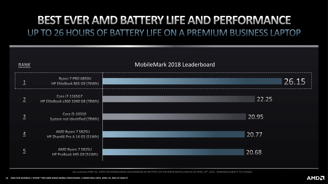 Что касается других данных из презентации, они в целом те же, что мы видели во время анонса обычных CPU нового поколения. AMD делает акцент на улучшенной энергоэффективности и ощутимо повышенной производительности.