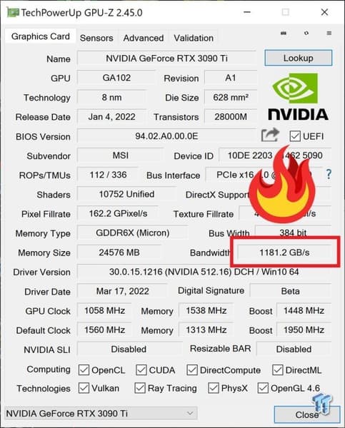 А можно ли разогнать такую память ещё сильнее? Как оказалось, можно. Специалисты TweakTown сумели разогнать память новинки до 1538 МГц, что соответствует эффективной частоте 24,6 ГГц! Заодно это обеспечивает карте пропускную способность подсистемы памяти в 1181 ГБ/с!