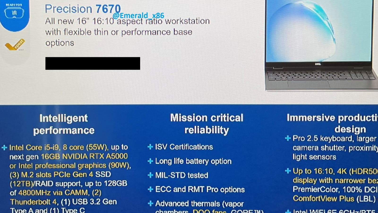 В Сеть просочилась информация о ноутбуке Dell Precision 7 нового поколения, который будет опираться на процессоры и GPU, которые пока ещё не были представлены.