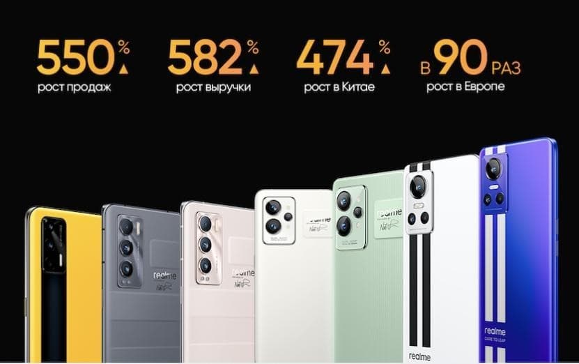 Продажи серии GT выросли более чем в 90 раз в Европе в аналогичном ценовом сегменте, а в Китае продажи за последний год выросли на 474%. В Чехии, Польше и Греции Realme вошла в топ-3 по продажам. В Италии, Нидерландах, Испании и Германии компания оказалась в пятёрке лучших.