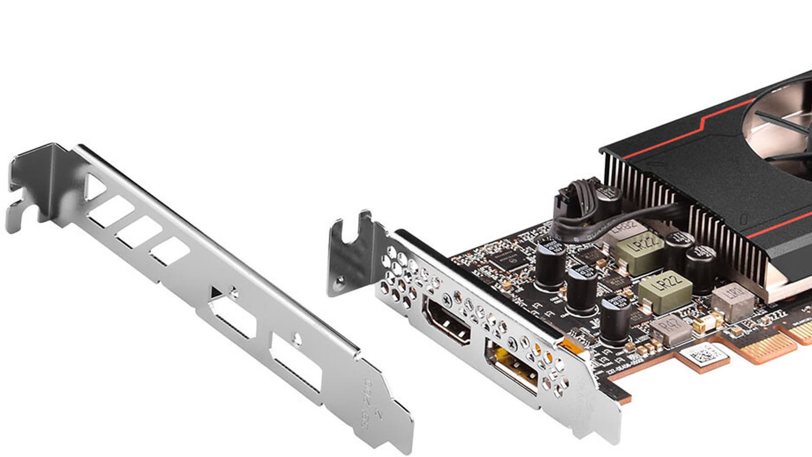 Потребляемая мощность видеокарты не превышает 55 Вт, что позволило обойтись без разъема дополнительного питания. Карта оснащена интерфейсом PCIe 4.0 x4. Для подключения мониторов есть по одному видеовыходу HDMI и DisplayPort. Оба они поддерживают разрешения до 7680 х 4320 пикселей.