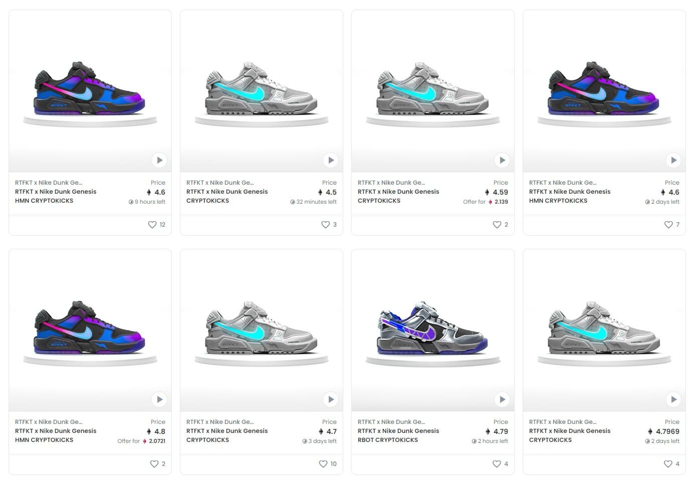 Персонализированную цифровую обувь в новом, изменяемом стиле Skin Vial NFT теперь можно купить за криптовалюту. «Токенизированные» кроссовки от Nike стилизованы под дизайн Nike Dunk, который впервые был представлен как специализированная баскетбольная обувь в 1980-х годах, а затем стал основным выбором в качестве спортивной обуви для скейтбордистов.