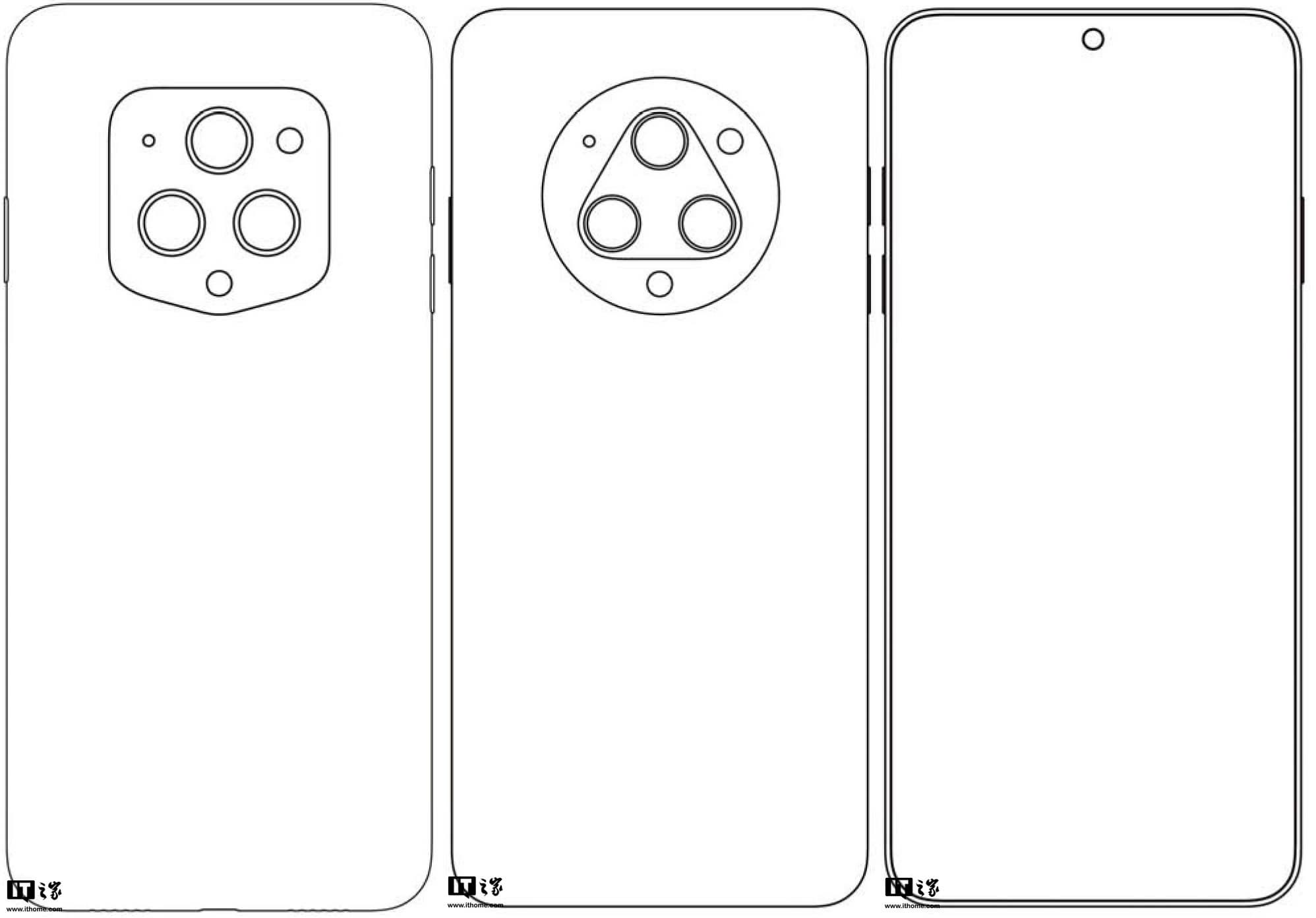 Вариантов оформления тыльной панели два, но отличия – лишь в нюансах исполнения окантовки блока основной камеры и модулей. Сами модули размещены по центру в форме треугольника. Судя по всему, маленький кружочек слева демонстрирует микрофон, а вот два кружка побольше, справа и внизу, могут символизировать собой вспышку и какую-то дополнительную систему. Например, лазерный помощник автофокуса. Фронтальная панель без особых изысков – с врезанной камерой по центру и минимальными рамками экрана, который, судя по всему, будет плоским, а не изогнутым.
